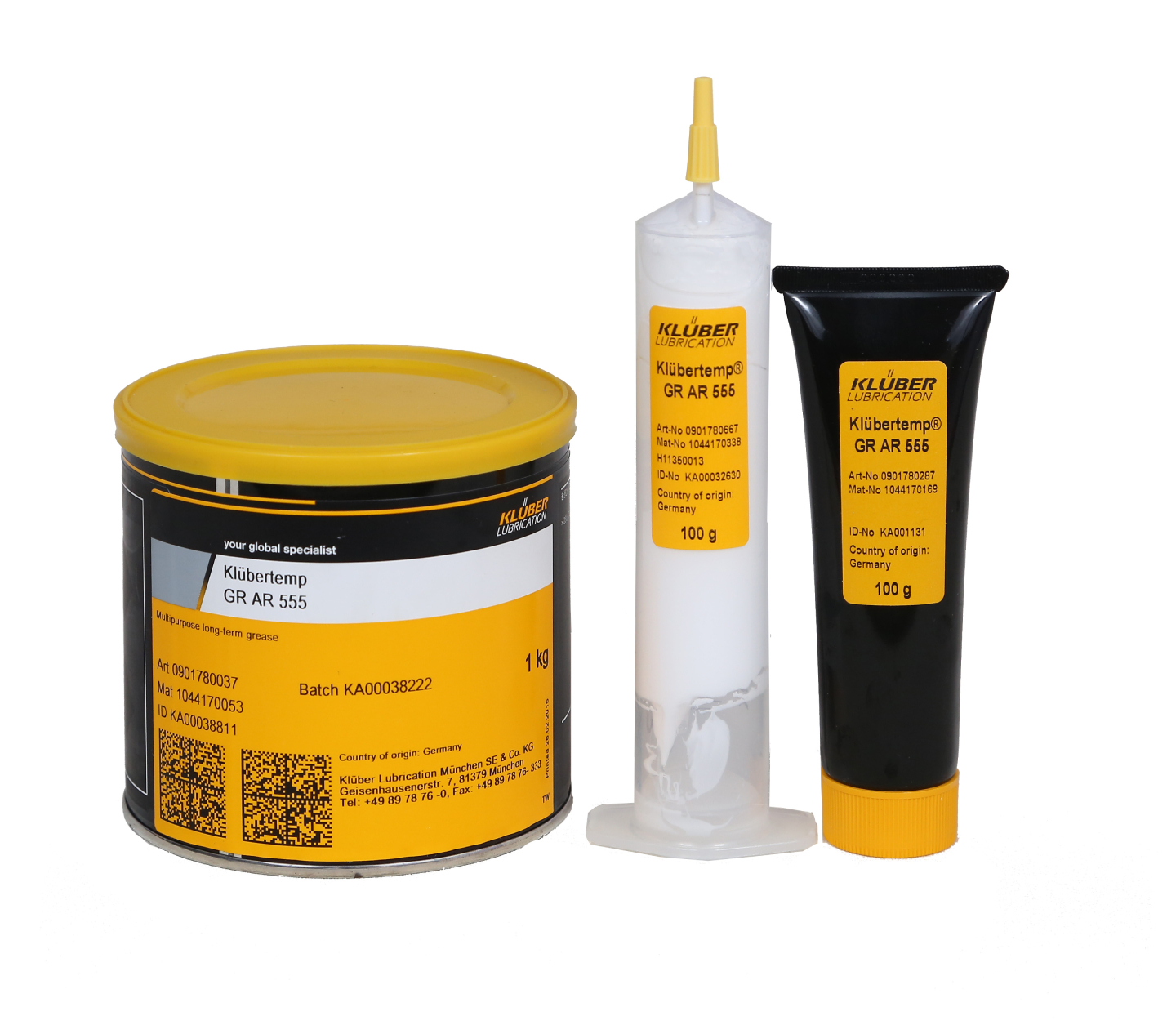 商品编号:Klübertemp GR AR 555 全氟高温型润滑油脂【操作温度范围】-30°C~250°C【包装规格】罐装(1kg)、牙膏状(100g)、针筒状(100g)
